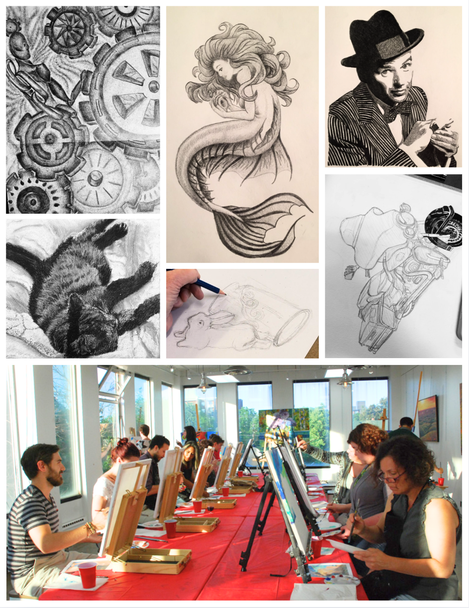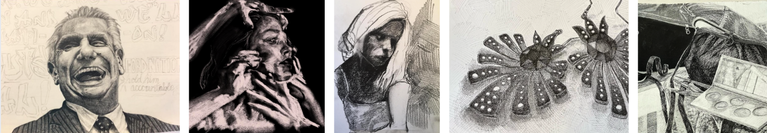 All artworks shown were created by past students, many of whom were complete beginners or had little prior drawing experience.